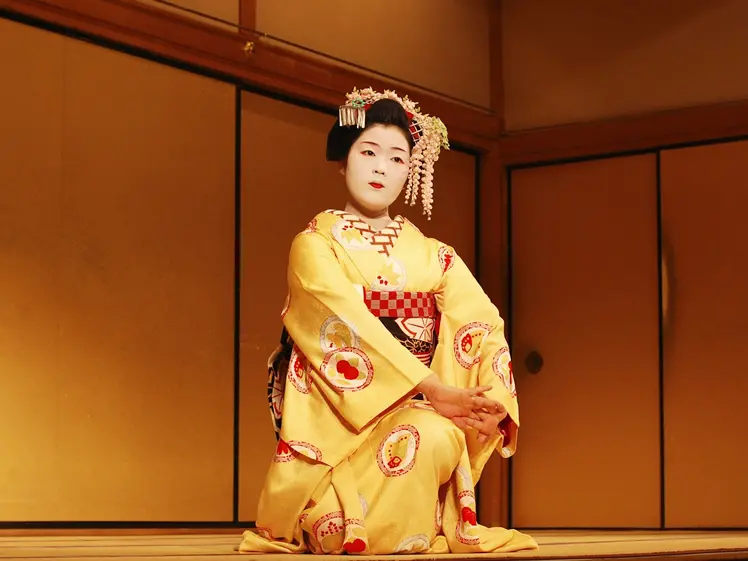 Geisha are traditional Japanese female artists known for their mastery in the arts of music, dance, and conversation. Wearing distinctive attire, including elaborate kimonos, obi sashes, and intricately styled hair, they entertain guests with performances of classical music, shamisen playing, or graceful traditional dance.