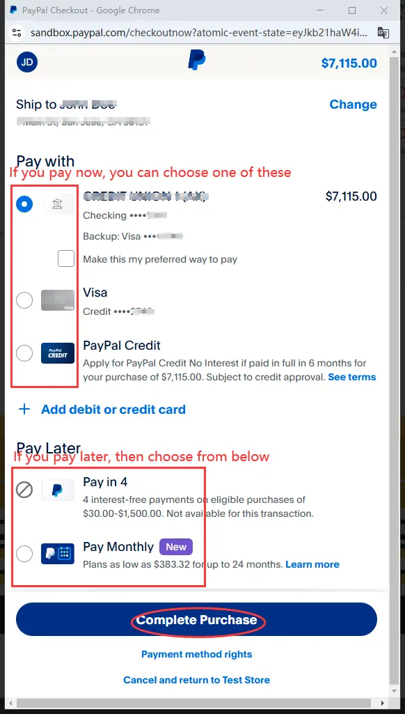 If selecting PayPal: A secure pop-up window will appear to finalize your transaction. Follow the prompts to complete payment (see example image as below).